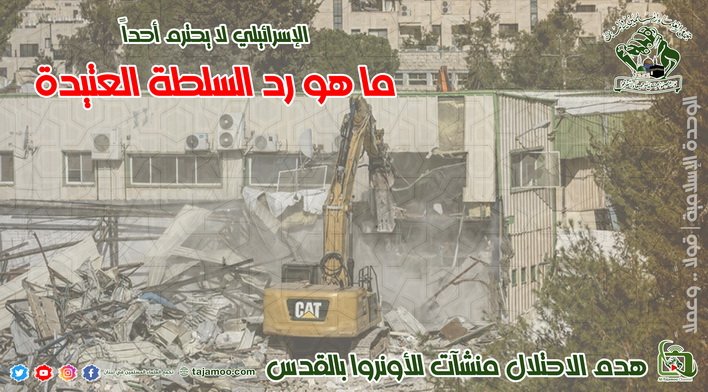 ثالثاً: يستنكر تجمع العلماء المسلمين إقدام محافظة القدس بإشراف وزير الأمن القومي في حكومة الاحتلال الصهيوني إيتمار بن غفير، على هدم مبان من مقر الأونروا في القدس، ورفع العلم الصهيوني فوقها، ويعتبر التجمع أن هذا التصرف يؤكد مرة أخرى على عدم نية العدو الصهيوني تنفيذ أي من الاتفاقات مع السلطة الفلسطينية، التي يجب عليها أن تعلن انسحابها منها، والعودة إلى الكفاح المسلح كحل وحيد لاستعادة الحق الفلسطيني.